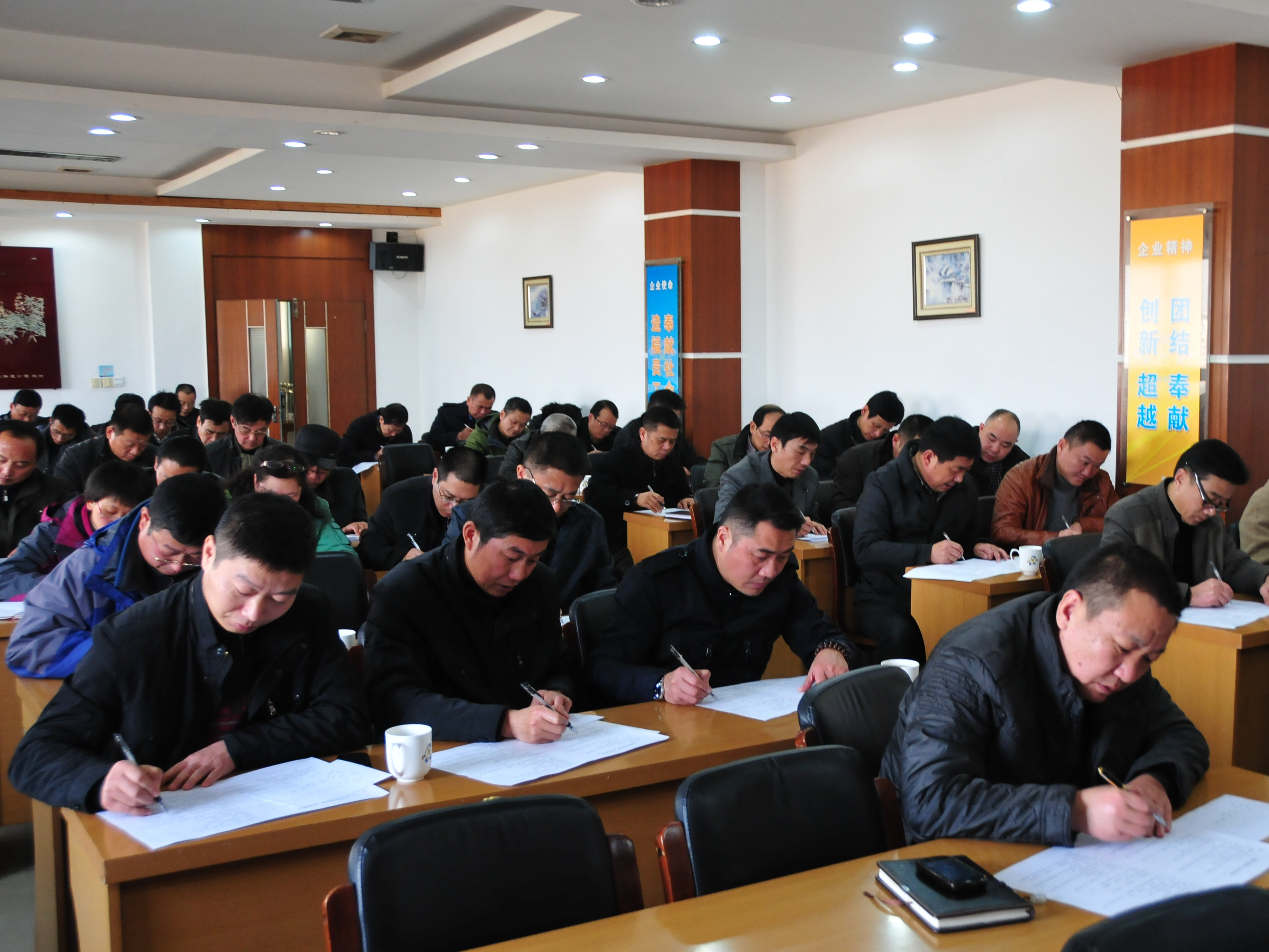 二是組織全體領導干部進行“時政、普法”考試。試卷以普法知識為主,融進十八屆三中全會知識及公司內(nèi)部管理應知應會知識。通過現(xiàn)場作答的方式,促使領導干部通過親自答題,增強對普法知識及十八屆三中全會精神的了解,加深其印象。
