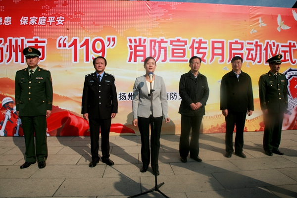 11月5日上午,揚(yáng)州市公安局消防支隊(duì)在瘦西湖風(fēng)景區(qū)舉行“119”消防宣傳月啟動儀式。揚(yáng)州市副市長張寶娟、市政府副秘書長王玉軍、市公安局副局長劉毅、消防支隊(duì)主要負(fù)責(zé)人和瘦西湖消防志愿者、揚(yáng)汽集團(tuán)以及全市消防重點(diǎn)單位負(fù)責(zé)人、學(xué)生代表200余人參加了活動。
