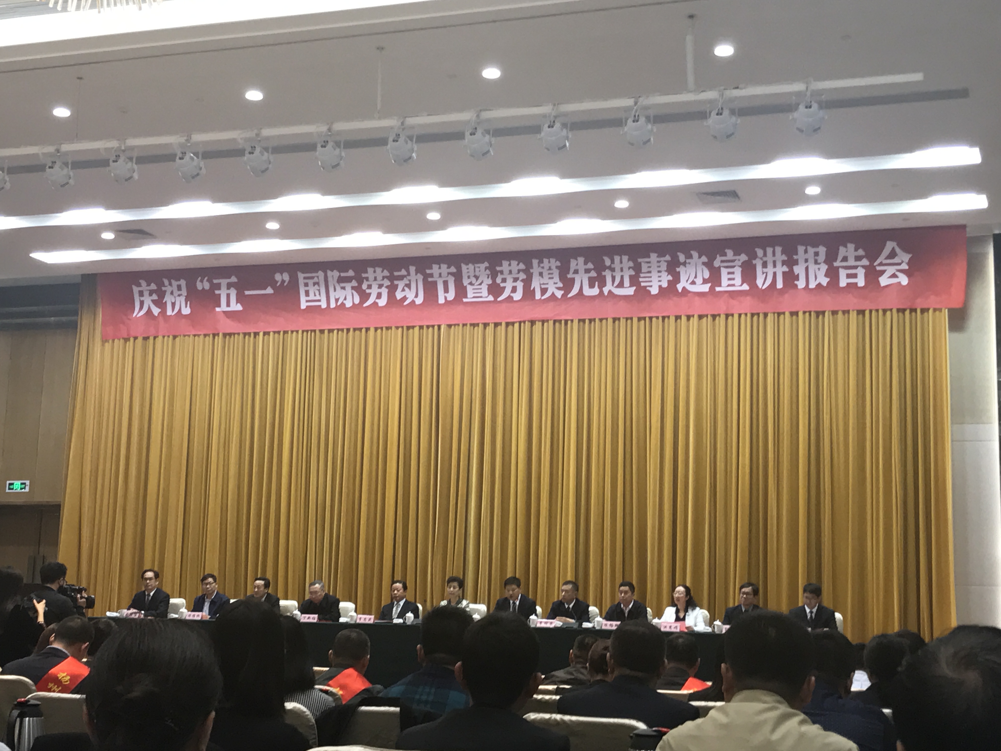 4月27日下午,市委、市政府在揚州明月湖酒店三樓會議廳舉行慶祝“五一”國際勞動節(jié)暨勞模先進事跡宣講報告會,揚州各縣(市、區(qū))總工會、功能區(qū)工會和市直各產(chǎn)業(yè)工會的工會主席,受表彰的2018年全國、省、市五一勞動獎章和工人先鋒號獲得者代表及職工代表近300人參加會議。會上,揚汽集團修理廠職工劉東、汽車站服務班分別獲頒“揚州市五一勞動獎章”、“揚州市工人先鋒號”榮譽稱號。