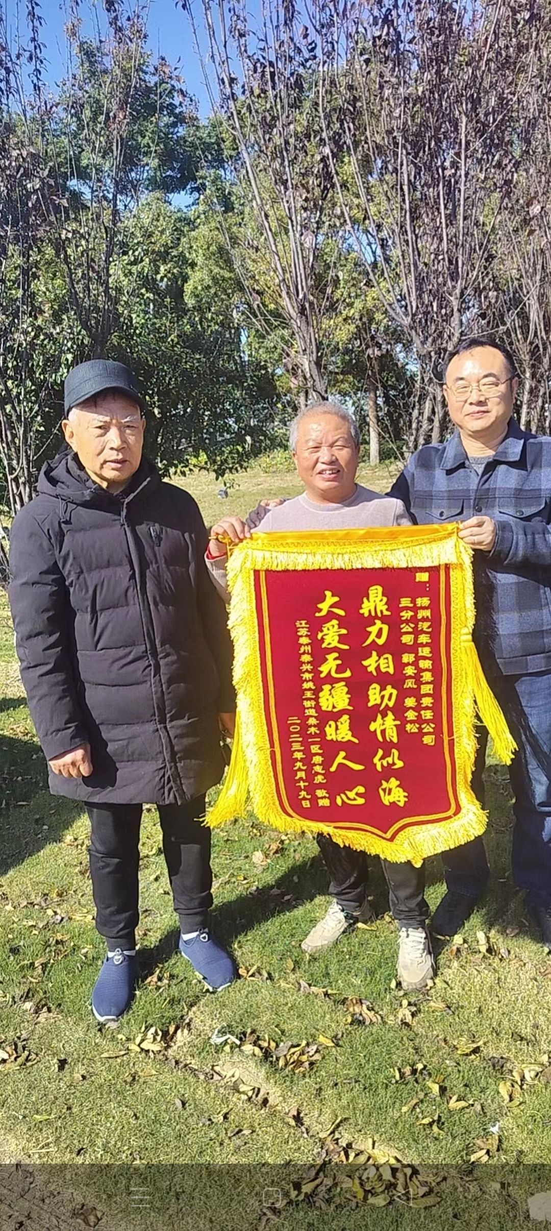 “要不是郭師傅和姜師傅及時伸出援手,后果不堪設(shè)想。”11月19日,江蘇泰興的一位唐老先生將一面印有“鼎力相助情似海 大愛無疆暖人心”的錦旗送到了揚汽集團(tuán),將這面承載著感激之情的錦旗贈送到駕駛員郭安鳳和姜金松手中,感謝他們在危急時刻對自己的幫助。
