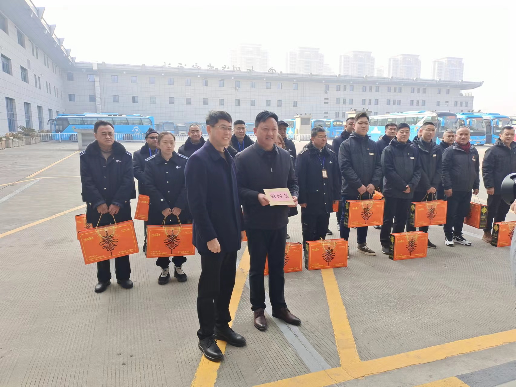 2月9日除夕,在萬(wàn)家團(tuán)聚、喜迎新春之時(shí),市交通產(chǎn)業(yè)集團(tuán)黨委書(shū)記、董事長(zhǎng)方璇智帶隊(duì)來(lái)到揚(yáng)汽集團(tuán)生產(chǎn)一線(xiàn),慰問(wèn)堅(jiān)守崗位的干部職工,為他們送去慰問(wèn)品和祝福,對(duì)他們?cè)谛麓杭压?jié)期間堅(jiān)守工作崗位,付出辛勤勞動(dòng)表示衷心感謝,并向他們致以新年問(wèn)候。