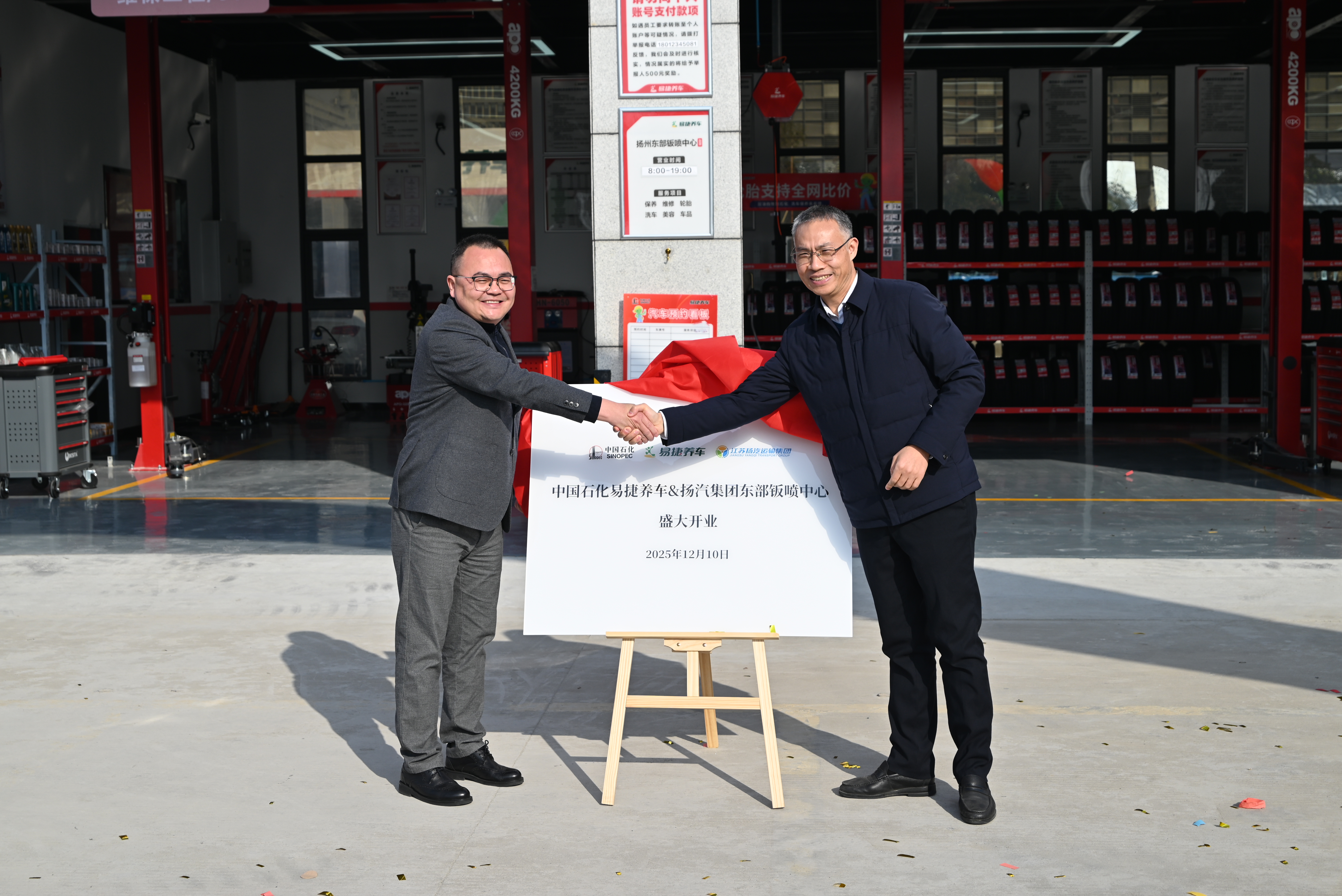 12月10日上午,揚(yáng)汽集團(tuán)與中國石化銷售股份有限公司江蘇揚(yáng)州分公司合作共建的“易捷養(yǎng)車鈑噴中心”在揚(yáng)州東區(qū)智慧園舉行揭牌開業(yè)儀式,中石化揚(yáng)州石油代表、經(jīng)理孔令江,副經(jīng)理吳杰宏,市交通產(chǎn)業(yè)集團(tuán)黨委委員、副總經(jīng)理李崇,揚(yáng)汽集團(tuán)黨委書記、董事長萬雷,黨委副書記、副董事長、總經(jīng)理劉俊等相關(guān)負(fù)責(zé)人出席活動,共同見證這一央地國企協(xié)同發(fā)展的新成果。